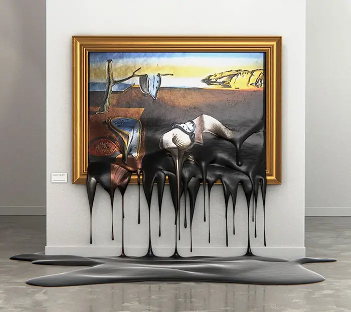 The Persistence of Memory (1931) is undoubtedly the most notable work of the great Spanish painter Salvador Dali. Even now, the surreal painting is still one of the most enigmatic works of art. The image of melting pocket watches is truly intriguing and fascinating as well. There’s something about melting objects that is so captivating. And this fascination brought a contemporary artist to do the unthinkable. Alper Dostal, a Vienna-based multidisciplinary artist, debuts his series of digital arts called Hot Exhibition. The artist re-imagines famous artworks by transforming them into melting masterpieces, like an ice cream under a scorching summer sun.