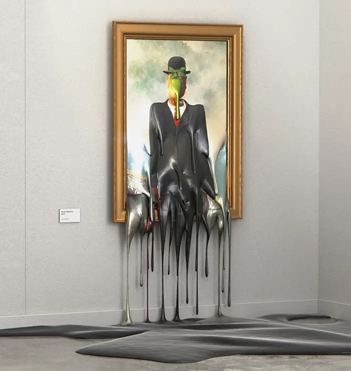 The Hot Exhibition art series features 3D conceptualization of melting paintings such as Van Gogh’s Starry Night and Edvard Munch’s The Scream. Of course, Salvador Dali’s The Persistence of Memory is no exemption. Even Rene Magritte’s The Son of Man and Jacques-Louis David’s Napoleon Crossing the Alps also got the ‘hot‘ treatment.