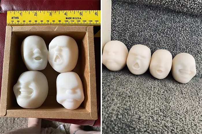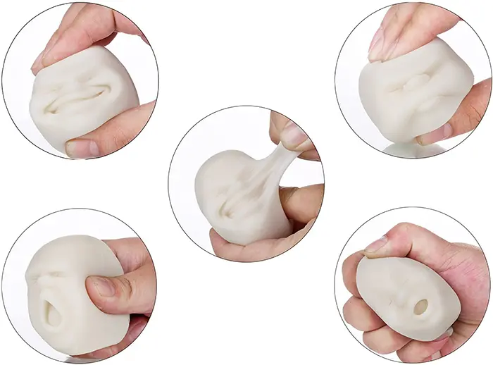 Each white-colored ball measures 2.56 inches tall, 2.17 inches wide and 2.56 inches deep. To maintain optimum elasticity, avoid placing these under direct sunlight and never store them in areas with a high temperature. As a whole, the elastic face is resistant to tear so it won’t break apart even if you stretch it. But also consider that it has small projection parts such as the nose and lip that can break off if you pull too much. Make sure not to pull these parts to make your human face stress balls last longer. A customer review reads:
