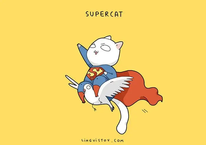 Cats are awesome creatures. That's why it's not surprising that many people use them for inspiration in their work or hobbies. The good thing about using cats is that they have such range when it comes to appearance and personality, making them easy to work with. Below you will find some super cool illustrations created by 'Lingvistov' where our feline friends are depicted as badass superheroes. We love 'Wondercat' and 'Batcat'! Take a look a pick a favorite!