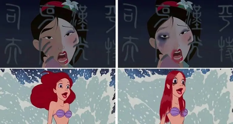 Disney films can be excellent but, let’s face it, Disney Princesses pretty much typify unrealistic beauty standards. We’ve already had a gander at what Disney Princesses might look like with realistic waistlines or if their ages were realistic, but what about their makeup? No matter what the circumstances, Disney Princesses always have impeccable makeup with not a smudge or a smear in sight. But, that is so not realistic! Loryn Brantz over at Buzzfeed has edited some stills of various Disney Princesses and given them much more realistic makeup for the situation. Check it out!