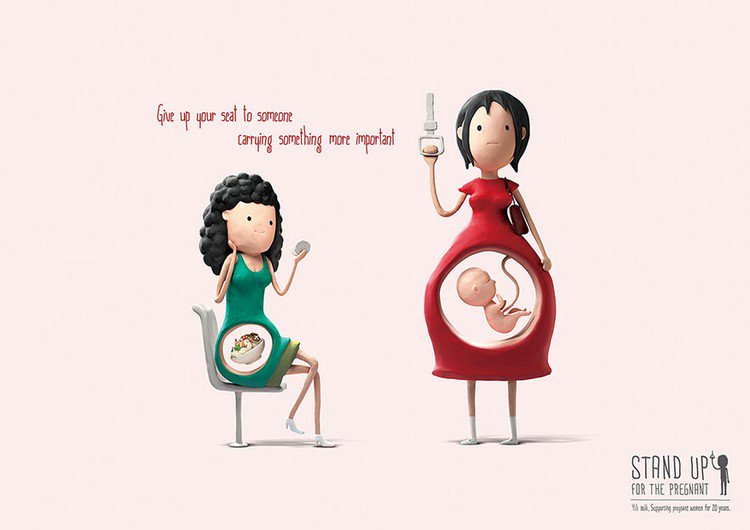These awesomely cute, yet to-the-point illustrations by Shiyang He for China-based 'Yili Milk', remind people to always give their seats up for pregnant women. Yes we are all tired when boarding the bus or train after a hard day at work, but imagine how much more exhausting life must be for expectant mothers. So next time you see a pregnant lady standing while you're sitting, do the right thing and offer them your seat!