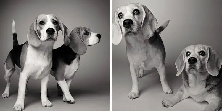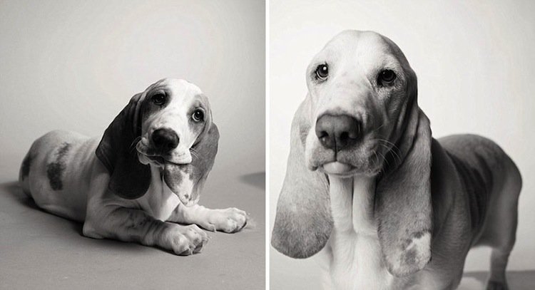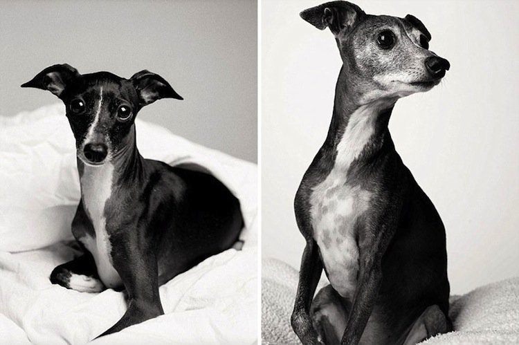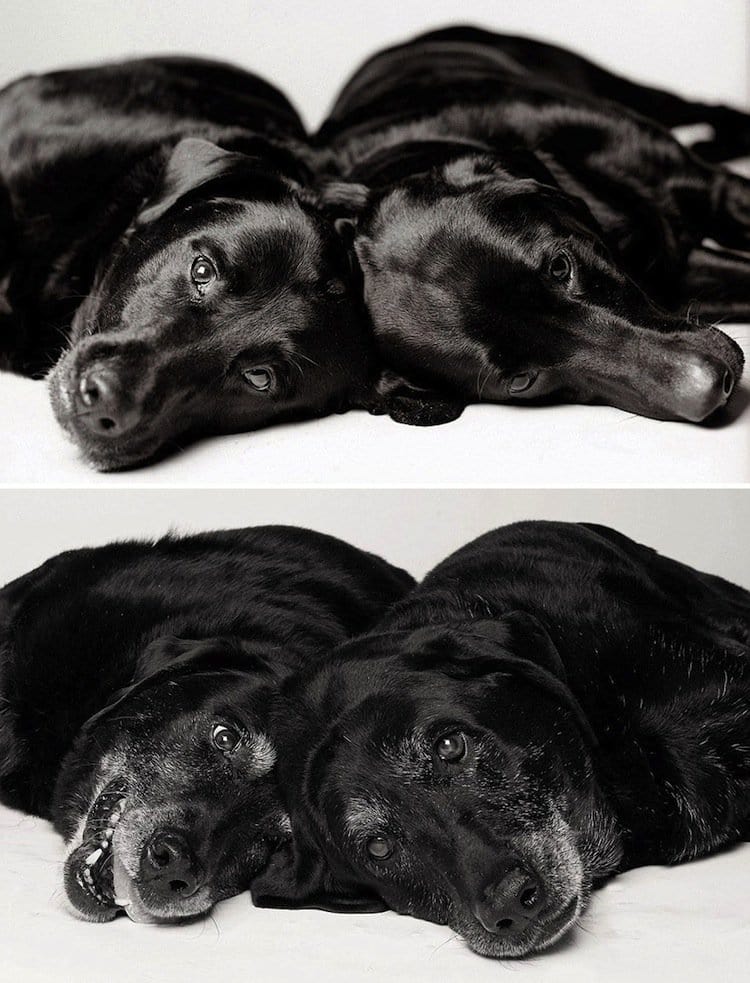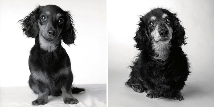 Some dogs don't really show their age, while others look completely different when they're old…at least when you compare them to pics of their puppy days. Amanda Jones has been taking photographs of dogs for twenty years and her latest collection of work shows doggy portraits of particular animals when they're young, compared to when they're much older. Her work was inspired by her own pet, Lily, who died during the making of Jones's book, Dog Years: Faithful Friends Then And Now. Check out some of her best work from the book below. It's sure to melt your heart!