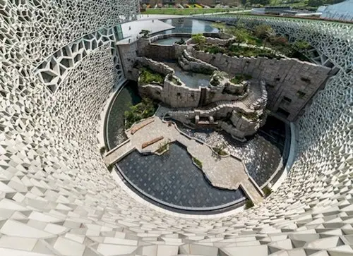 The natural history museum in Shanghai has a huge wall that was constructed to look like a cell wall.