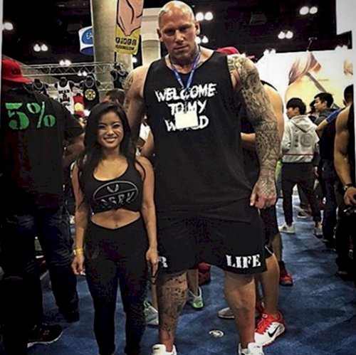This is bodybuilder Martin 'Nightmare' Ford, next to a much smaller fan at a fitness expo.