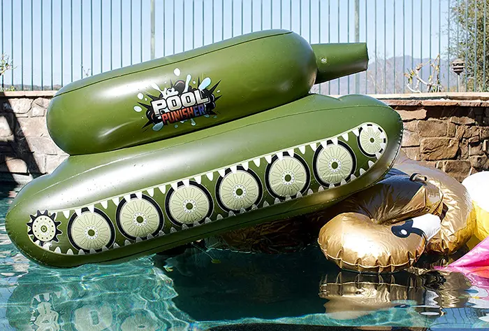 Aptly named as Pool Punisher, this inflatable combat vehicle features a built-in water cannon equipped with a pump-action squirt gun. It boasts a shooting range of up to 50 feet, so it’s sure to evoke fear among everyone around you. Made of ultra-durable vinyl, it’s able to withstand even the most extreme water battles. It also comes in an army green color and features tank tread decals on the sides to complete its military look.