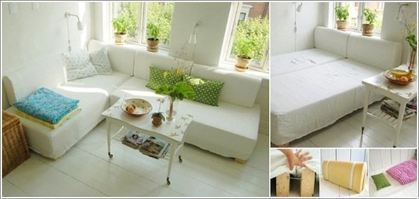 Make use of an 'L' shaped couch bed.