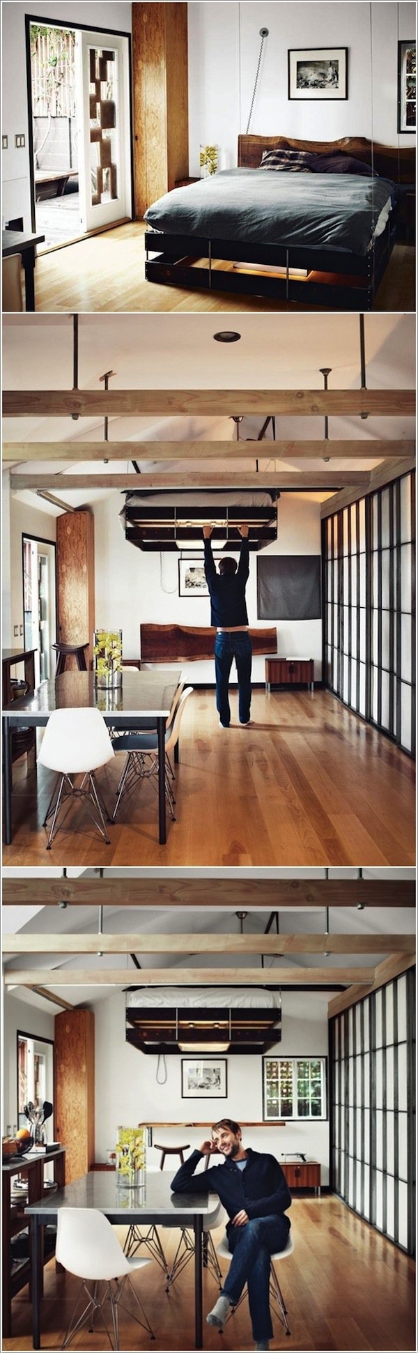 Save space with a moving cubicle as a bedroom.