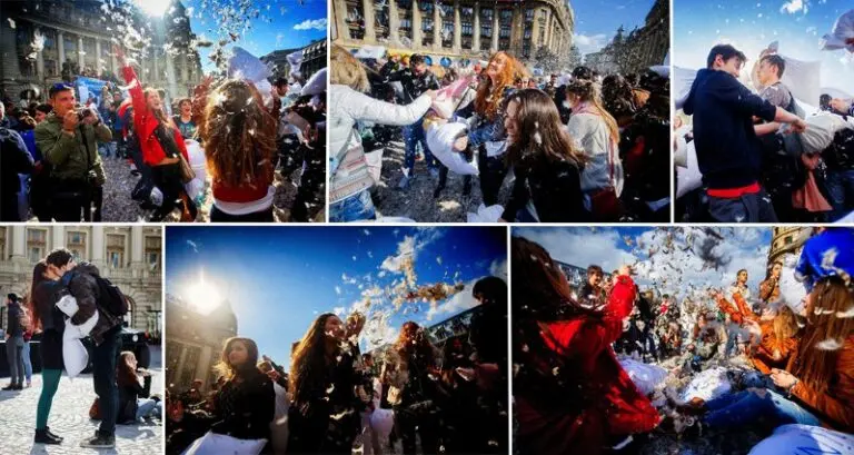 International Pillow Fight Day was started in 2008 as part of the Urban Playground movement. The aim of the movement is to arrange fun, free activities that everyone can join in with, as well as generally making the world a more playful place. This year's International Pillow Fight Day took place on April 4th, with pillow fights happening in multiple cities across the globe. One such pillow fight happened in Bucharest, Romania, and professional photographer Marius Tudor was there to document it. Let's check it out!