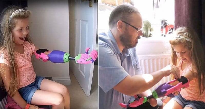When team 'UnLimbited e-Nable' presented Stephen Davies with a free prosthetic arm, he was extremely grateful and ended up becoming a volunteer for the organization. E-Nable is a worldwide network of volunteers who are aiming to build at least 1,000 prosthetic hands for disabled children. When Stephen heard that 8 year old Isabella was in need of a prosthetic arm, he designed one for her and drove 200 miles to present it. Isabella absolutely loves her new arm and wore it to the supermarket immediately after she was given it. Kind-hearted Stephen says the day he presented the youngster with her new hand was one of the best days of his life. Absolutely wonderful! Take a look!
