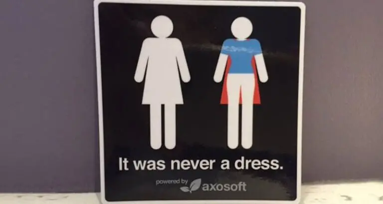 Activist, author and programmer Tania Katan has come up with a novel way of brightening up mundane womens' toilet signs. Instead of the dress-wearing bathroom sign figure we're used to, Katan's signs feature a woman in a superhero-style cape, along with the slogan, "It was never a dress". A clever design, sure, yet what's the point of it? Turns out Katan, the Curator of Code at software developer Axosoft, launched her "It was never a dress" campaign in an effort to encourage more women into tech jobs, a usually male dominated domain. Check out the cool imagery below…