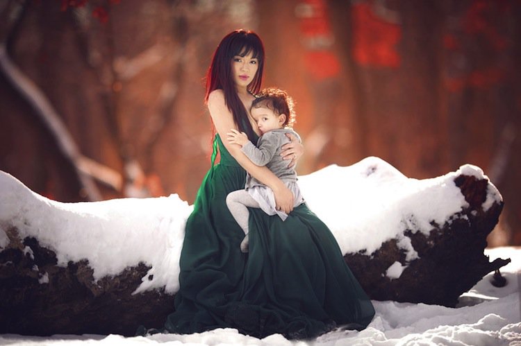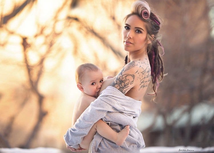 You don't often see mother and baby photos where the mom is breast feeding. At least, not stunning pictures like the ones below. Photographer Ivette Ivens created a series of highly stylized photos taken of women breastfeeding outside, many of them wearing next to nothing. Ivens is a breast feeding proponent and wants everyone to know it's ok to feed your child from the breast, in public. Ivens work was recently featured in an exhibition in Chicago called 'I Breastfed My Toddler'. The 25 year old is a mother of two who nursed her first born until he was three years old, 'I nursed them both anywhere I wanted,' she told 'BoredPanda', 'From church to parties, from farmer's markets to high end designer stores. I believe that mothers should nurse their little ones whenever they want to.' Check out her beautiful work below!