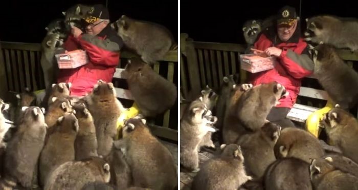 This Video Showing Him Feeding The Raccoons With Hot Dogs Has Gone Viral