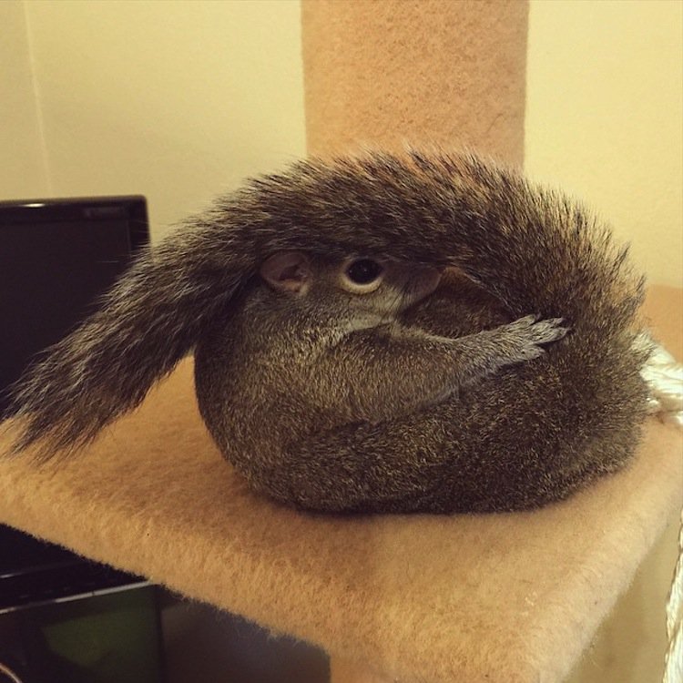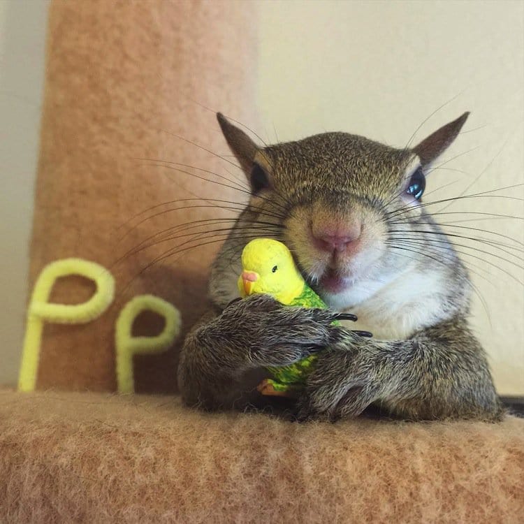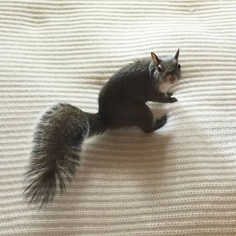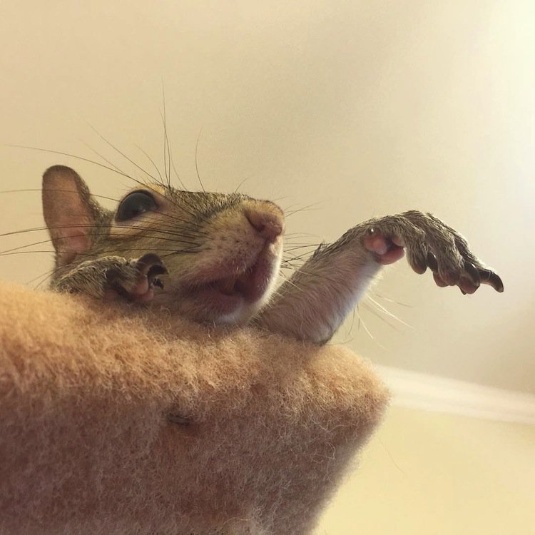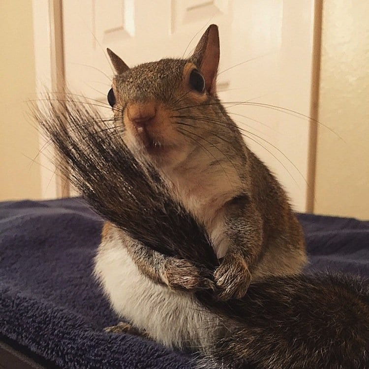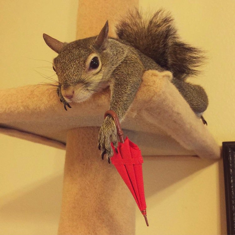 A Louisianan squirrel that fell from her nest during a hurricane was rescued by a family who now call her one of their own. Dubbed 'Jill', the gorgeous and photogenic squirrel has become an Instagram celebrity, since her family posted these adorable shots of her looking cute in a myriad of ways. Her owner writes that although Jill has a cage, she generally has free run of the house. She is even trained to use a garbage can as her bathroom. Check out the link below for more pics of this adorable critter. Cute!