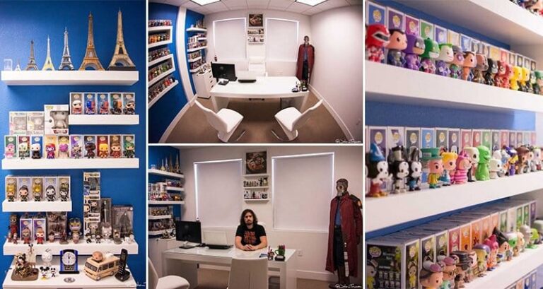 Project Development Officer, Creative Director and Owner of Truman Arts, John Truman is a busy man. John's middle name is creativity as he writes songs and plays guitar as well as other stringed instruments! He is also a photographer, graphic designer and architect, and with all this stuff going on he needs to work in a space which feels just right. With this in mind he redesigned his office and used it to showcase his entire stash of awesome collectibles. He even managed to fit in his Star-Lord costume he wore for Halloween 2014. What an amazing office space… it must have taken an age to get that collection together. Check it out!