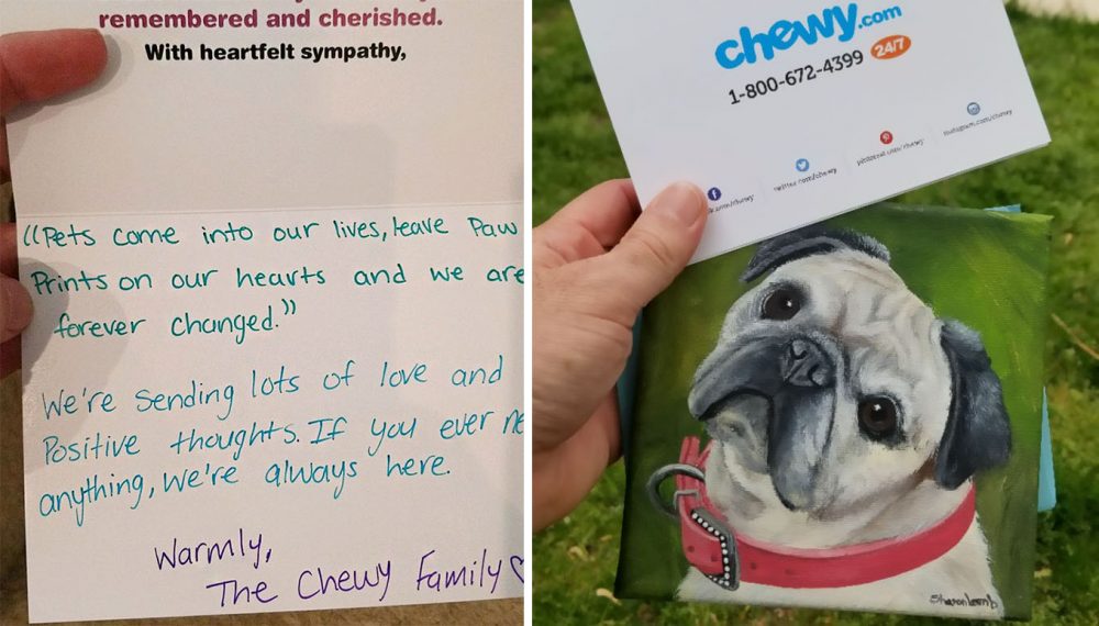 We’re sending lots of love and positive thoughts. If you ever need anything, we’re always here. Warmly, the chewy Family.”