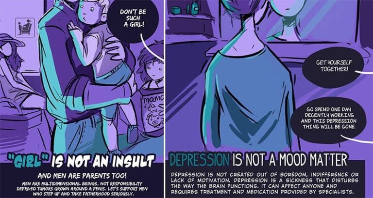 If you've ever thought that a rape victim shouldn't have worn such a revealing outfit or shouldn't have drunk so much, or if you've ever thought that gay people shouldn't kiss or hold hands in public if they want to avoid getting abuse, then you've engaged in victim shaming and, frankly, that's not cool. Polish art student Katarzyna Babis has used illustrations to highlight different forms of victim blaming and prejudiced language in order to educate people and make them think twice about what they say. For instance, when someone calls a person a girl as an insult, they're insinuating that being female is somehow less than being male. Even if this isn't really what they intended, it's damaging to equal rights and society as a whole. Babis wants to call people out on this and try to make a difference! Let's take a look at some of her work!
