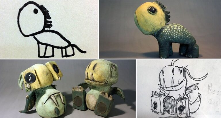 California-based artist and sculptor Joshua Margolis has been creating robots and monster from peoples drawings for 6 years. It all began when a young student of his drew a robot and asked him to recreate it in clay. Soon there were many people lining up at his art studio in Oakland to have him recreate their drawings, skilled artists and ordinary people alike! Joshua loves the whole concept of this project as it brings together people from all backgrounds and encourages them to express their creativity.