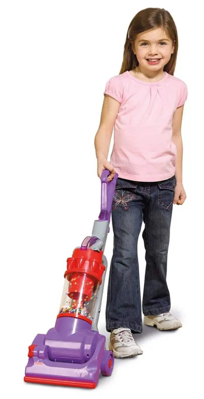 The Dyson Vacuum for kids has working suction in the handle that can pick up small objects from the floor