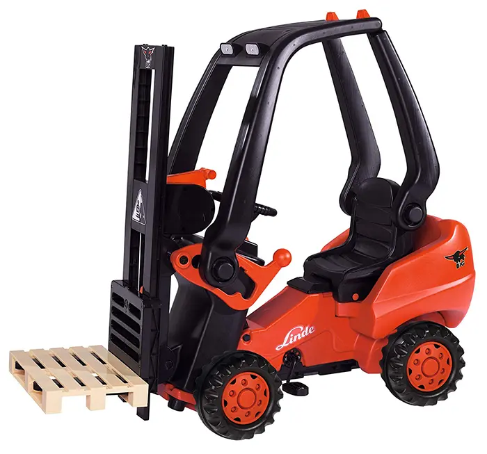 Specifically designed for kids, this forklift can be move around by pedaling. Furthermore, it features a functioning forklift to allow your kids to haul stuff around. They can pick things up, move them around and set them down anywhere they want. It’s like they’re driving the real thing. It is modeled after the Linde Lime Tree Series 394 forklift to give your kids a realistic experience. The toy comes with a mini wooden palette to make the hauling operation easier. Your kids can place stuff on top of the palette, insert the forks into the palette holes, and lift it up to move it around.