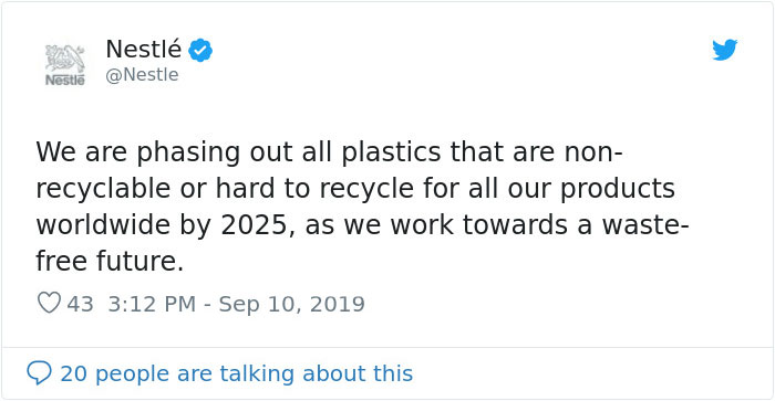 On September 10, 2019, Nestlé’s tweet caused positive buzz among the environmental groups: