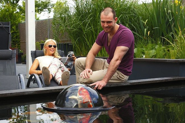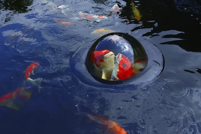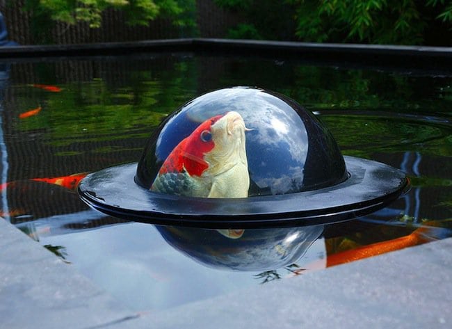 Ever wished your Koi fish could see the outside world? Then wish no longer, as a Dutch company, called Velda, has invented a new device they call the Floating Fish Dome. The dome, when placed in a pond and filled with water, allows your Koi fish to rise up above the surface, giving them an exciting peek at the outside world. It is also possible to train your Koi to be fed inside the dome, so that you can get a better look at them while feeding. Koi are an extremely popular variety of the 'common domesticated Carp fish'. They were first bred in Japan in the 1820's, and have always been admired for their golden color. You can grab one of these special fish domes for around $200. Check it out!