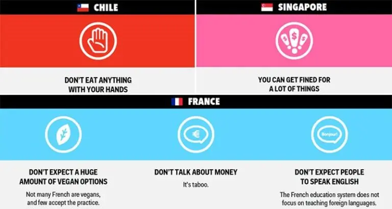 Traveling to new countries can be fun and exciting, but many people find that when they arrive, they get a culture shock. Every country has its own customs and social norms, so it’s important to remember that what might be perfectly normal (or even encouraged) in one country, can be rude or offensive in another. This might seem like a potential minefield, but as long as you do your research before visiting an unfamiliar country, then you should have no problems. Business Insider has put together a handy infographic, so you can see how not to behave in 15 commonly-visited countries all over the globe. Whether you travel for business or pleasure, you’d be wise to keep these in mind.