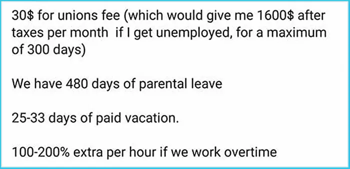 The Facebook user also presented a breakdown of their gross income and how they’re spending it on a monthly basis. Let’s also include the fact that the country is one of the most prosperous in the world according to the Legatum Prosperity Index 2020. The country also has a high life expectancy of 83 years mainly because of the free health care access for all its citizens. On top of this, the country boasts very low unemployment rates while maintaining a trade surplus. So, Americans can really learn a thing or two from the Nordic life.