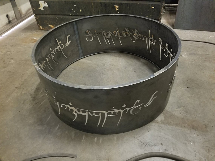 This Lord of the Rings fire pit features a giant replica of the most powerful artifact ever created in Middle-earth. It also features the same Black Speech inscription of the original artifact from the film. So when you light the fire, the flame inside the pit makes the inscription glow to give it a more magical appearance. The pit is made with a combination of 16 gauge steel and 10 gauge steel. It measures 30 inches in diameter and 12 inches high.