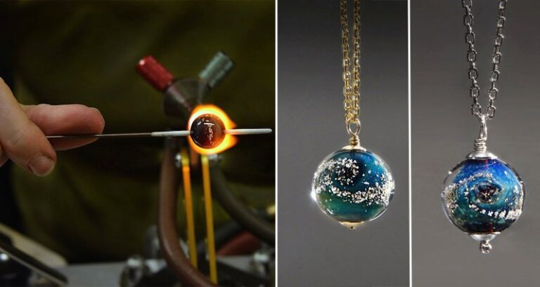 Merry Coor is a Californian artist who has been making glass beads since 2000. Last year, a young couple asked her to make a memorial bead containing some of their dear friend’s ashes. She now specializes in this unusual art. “My bead making now gave me a new purpose, and a way to honor others, both living and passed,” Coor writes on her Etsy. “It was 80 degrees in my studio that day, but I had the chills the entire time I was making the beads.” Coor makes each bead by hand, in her studio in Eureka.