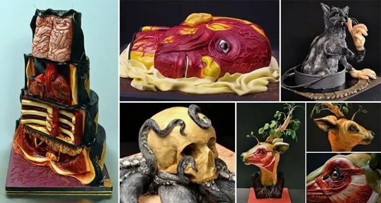 From white chocolate dead babies' heads, to bejeweled skulls, to realistic-looking hearts and animal insides, Annabel de Vetten's cakes are perhaps, for some, too freaky to eat. The German-born cake maker's inspiration comes from horror movies and alternative art. Now living in Birmingham, England, her creepy treats have been snapped up by the likes of the 'British Library', the 'Barbican Museum' and the television series, 'Oddities'. Of her morbid creations, De Vetten told 'Vice', 'You get that little thrill of eating something your eyes tell you not to, but your nose and taste buds urge you to devour'! Check out some of her most frightening work below!