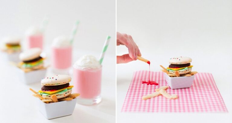 In honor of National Burger Day (which is on May 28th, if anyone's interested for next time around), one food blogger decided to make a sweet version of this favorite junk food staple. Ashley Rose from Sugar and Cloth, created the most adorable mini dessert that we've ever seen. The star of the show were the macaron burgers, complete with fondant lettuce, icing ketchup and decorative dough cheese. And, if that wasn't enough for you, Ashley also made a portion of sugar cookie fries to go with them, along with a tiny glass of milkshake to wash it all down. If you have a sweet tooth, this must be your dream burger! What's more, if you're feeling ambitious, Ashley posted the recipe for this mini meal up on her blog, so you can give it a go, too!