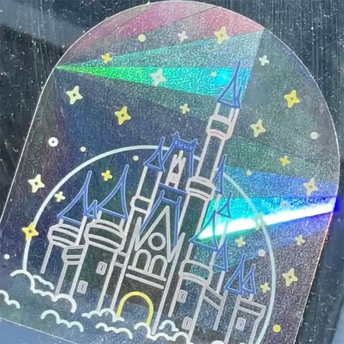 This window decal features the iconic castle from the Walt Disney logo. So, the design itself adds a touch of fairy tale magic to any window. The castle decal also comes with an extra rainbow-shaped sticker with Mickey Mouse ears hidden in the clouds. Place the rainbow-shaped sticker on top of the castle decal to get more rainbows in.