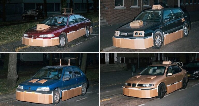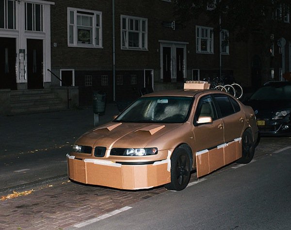 If you live in Amsterdam, own a car and park it on the street at night, then you could be in for a very special treat. One morning, you could wake up to the sight of your ordinary automobile turned into a custom made super car! We should probably mention that the upgrades to your car will be of the cardboard and masking tape variety, but still… photographer Max Siedentopf has made it his mission to 'upgrade' as many strangers' cars as possible, in the dead of the night. What makes him do it? We're not sure, but it's pretty cool, anyhow. Take a look!