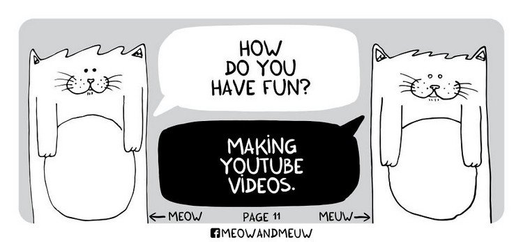 Wouldn't it be wonderful to know what our feline friends are thinking and feeling? Well if you check out the illustrations and link below you may just find out! Meow and Meuw are two funny cats. Created by Adrian Serghie, the pair are a little like an old married couple who feel comfortable enough in one another's company to have a joke and make fun of each other. Take a look at their adventures below, we are loving the fan cartoon and what about the YouTubing cat?! Awesome!