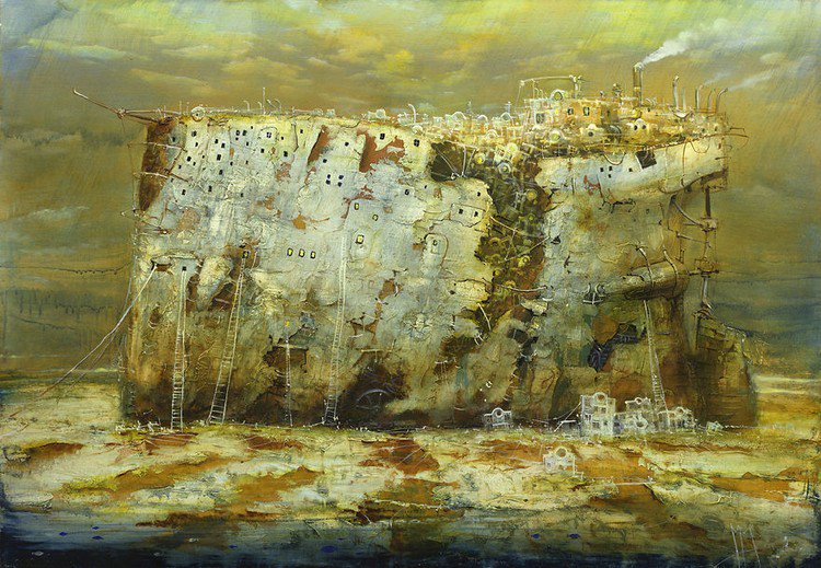 Viewing the art of Lithuanian born Modestas Malinauskas can be likened to stepping into a magical fantasy world. His paintings are filled with crazy hybrid vehicles, ships and airships, the likes of which have never been seen before. Using oil as his medium he has come up with his own original technique to create his works. You could get lost in them for hours! Let us know what you think in the comments below.