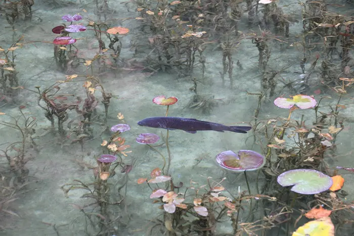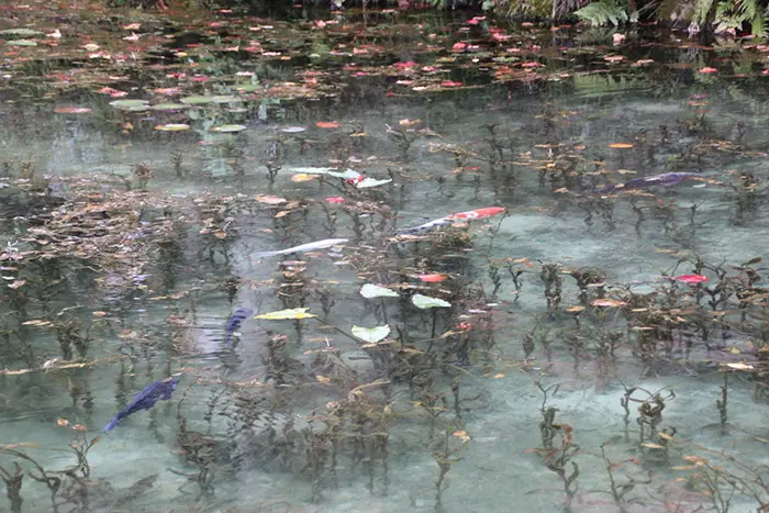 Just like the scenes in the Water Lily series, the pond in the Gifu Prefecture outside of Seki City features plenty of charming water lilies floating on the surface of a crystal clear water. The pond acquires its water from a spring source in Mt. Koga. Since the water source comes from a volcanic rock, the spring water contains no nutrients that can support microbial life. Therefore, the result is a transparent water void of any microbe.