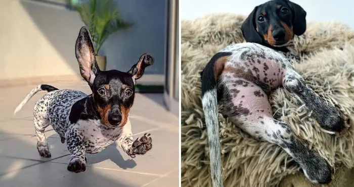 The dog lives with his owner Victoria Hoffman in Miami, Florida. According to Victoria, the adorable wiener pup always receives unexpected reactions from people whenever they go out for a walk. More often than not, people think the dog is wearing doggy pajamas. Indeed, it’s rare to see a dachshund that looks like a mini cow or a Dalmatian.