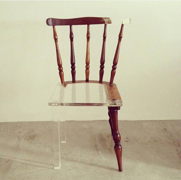 Memories of the past, no matter how broken they are, cannot be replaced or rewritten. In order to honor the past that can no longer be brought back, the artist selects to mend the broken pieces with translucent materials. This could restore the item’s functionality while leaving the lost memories as they were. As a result, the fixed furniture presents a perfect balance of the vintage and the contemporary, solid and translucent. The application of opposing forces to achieve asymmetrical design has never been so appealing and fascinating. Furthermore, this artwork encourages us to revisit our past and learn to adjourn it with our present. That would definitely make our life more beautiful and meaningful.