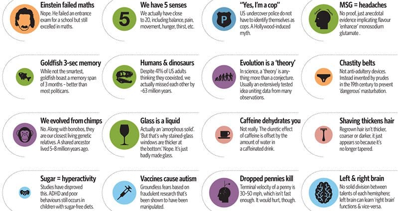 It's amazing how easily we believe what people say to be true as they seem to know what they're talking about. A lot of the time if it makes sense, we tend to just go with it. And, there are many things we read, see and hear that we pass onto others that simply isn't correct. Below we have an interesting list of myths that has subjects on there we definitely thought to be true! Take a look, you might learn something and feel free to comment any other common myths that people need to know about!