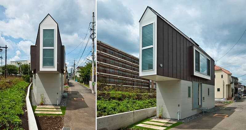 The 594 square foot house was designed by ‘Mizuishi Architects Atelier’. Situated in an awkward triangular space between a road and a river, you’d be forgiven for thinking the house would be very cramped. Surprisingly, the house has two floors and a ladder accessible mezzanine level. Check it out!
