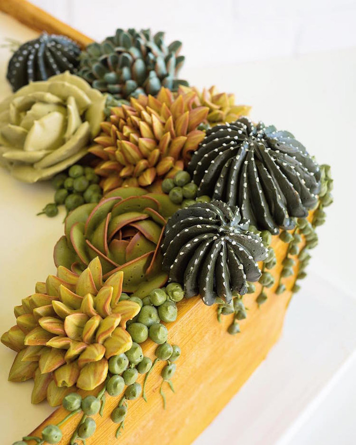 Vigil is part of a family-owned cake shop named Tasteful Cakes that specializes in designing ornamental cakes. As a buttercream enthusiast, Vigil uses buttercream frosting to mold realistic flowers and succulent plants on her nature-inspired cakes. Her realistic buttercream botanicals are so stunning that they are almost too good to eat. In some of her creations, she uses a fondant to sculpt a flower pot and planted different varieties of succulent frosting in it. One look at her potted succulent cakes would make you doubt whether they’re really cakes or plants.