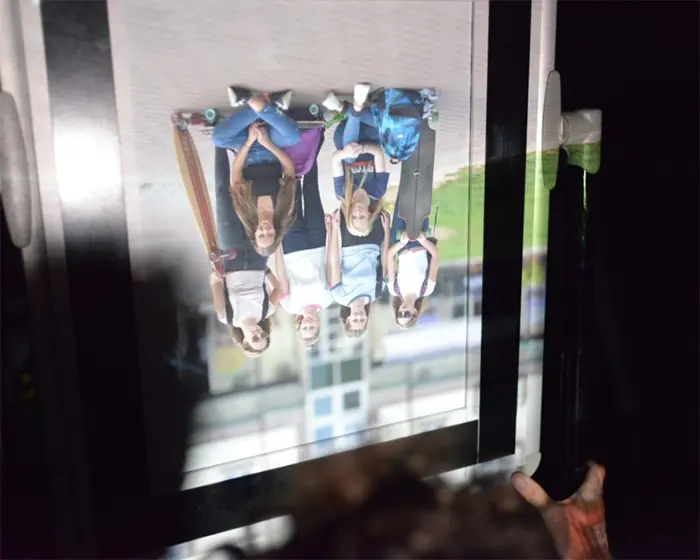 While parked, over 300 people got to experience the Caravan Camera. They were welcome to step inside the camper and peek through the pinhole camera to view the world through the lens of a camera obscura. People would then pose outside to have their portraits taken and step back in to see how their photos come to life in the darkroom trays.