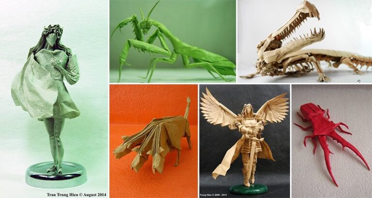 Most of us have dabbled in origami at some stage, even if we were just making a paper sailboat or a classic crane. However, this isn't origami as you know it; it's something much more impressive. By day, Tran Trung Hieu (who is also known as Adam Tran) teaches science at a high school in Vietnam's Ho Chi Minh city, but in his spare time he masters origami. As a member of the Vietnam Origami Group, he also attends a local center to hang out with other origami enthusiasts, teach others, and learn more about the craft. Tran's amazing paper sculptures technically aren't pure origami, but he uses many of the traditional techniques of this ancient Japanese art form, as well as some other paper folding moves, which allows his pieces to have more curves and nuances, rather than just straight lines. Whatever you want to call his paper folding style, it's super creative!