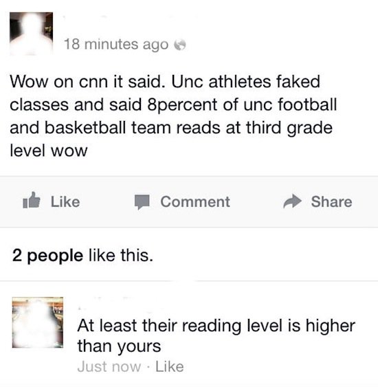 Most of us have a Facebook page. And, the majority of us maintain it purely so that we can keep in touch with friends and family, we'll often have a gander at what they've been up to, as well. Sometimes, we might share a few snaps or 'life events' of our own. Yet, there's a portion of Facebook users who don't use the social networking site to have a peek at their mates' holiday snaps. This small portion of users are the people who are constantly posting content which is controversial, overly opinionated or just plain dumb. If you're one of these people, remember, if you post nonsense, your Facebook 'friends' are more than likely going to call you out on it! Just like the 14 Facebook failures, below! Take a look!