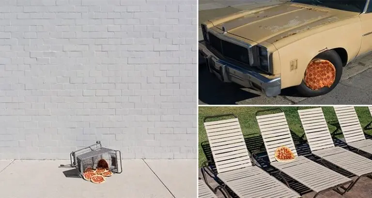 Photographer Jonpaul Douglass clearly has a 'thing' about pizza. You could say he likes his al fresco….to the extreme! In his photo series, pictured below, you will find pizza lounging on a deck chair, pizza replacing the basketball in a slam dunk manuovre, and pizza casually riding the backs of both a dog and a horse, as though it were some type of salami-covered saddle. Douglass reckons he'd order two fresh uncut pepperoni pizzas on each photo outing he took for this project. Sometimes, he'd let the pizzas harden up before he posed them. Perhaps rather amazingly, considering some of the more wild photo shoot locations, Douglass told BoredPanda that he often ended up eating his photo subjects. "They rarely went to waste." Wow…check out the results of this pizza play below!