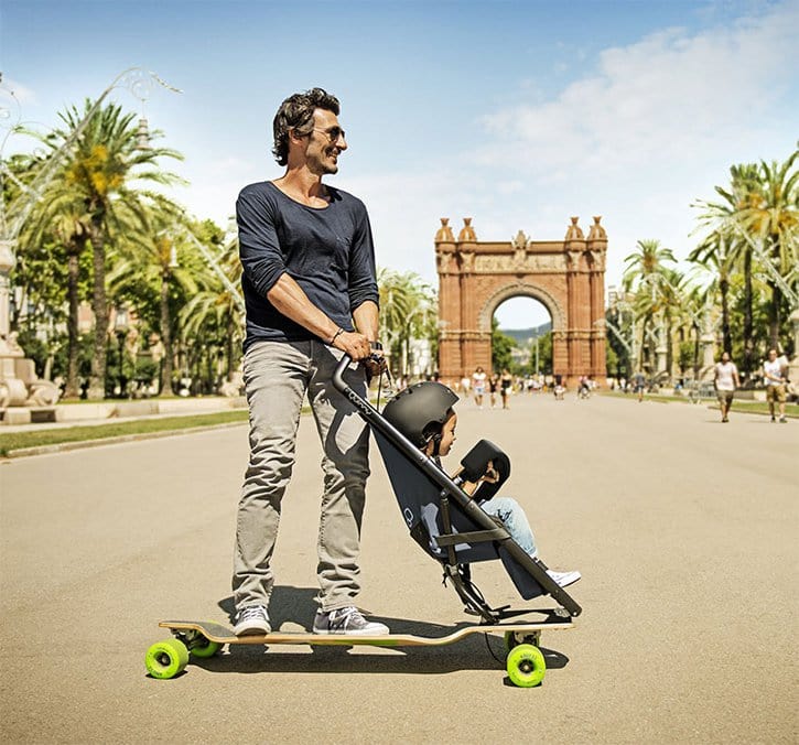 Have you ever been pushing your child along in their stroller and found yourself bored, wishing that there was a better way to get around? Well, wish no more with the 'Quinny Longboard Stroller'! Recently, longboards have increased in popularity so it makes perfect business sense to cater to this! The European stroller designer has finally made the invention available to the public after 2 years of development. Fitted with a bumper bar and hand brake, it looks safe and easy to maneuver, just remember to make sure your child always wears a helmet! The stroller-with-a-difference is currently only available in the EU. So, with it being on sale for a sweet 599 Euros, would you make the investment? Check it out!