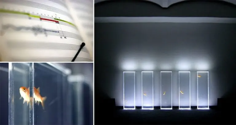 'Quintetto' is an amazing concept. It is an installation which produces sound based solely on the movements of the five fish inside. The swimming of the creatures are captured by a video camera. This in turn sends signals via computer software which then translates the movements into digital sound signals. Take a look at the photos and especially the video below and hear for the first time ever what a fish orchestra sounds like… it's pretty awesome! Let us know what you think in the comments section below!