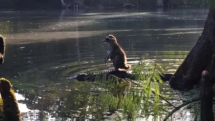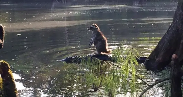 This less than sensible (but totally fearless) raccoon had a lucky escape when it jumped straight onto the back of an alligator lurking in shallow water. Amazingly, the moment was captured on camera by Richard Jones, who was out walking with his family in Florida when his son inadvertently startled the raccoon, causing it to scramble away and end up on the alligator's back. 'I snapped a lucky picture right when the gator slipped into the water and before the raccoon jumped off and scurried away. Without the context you'd think the raccoon was hitching a ride across the river. Pretty amazing.' Amazing, indeed!
