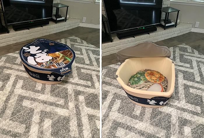People who saw the photos wanted to get the same noodle bed for their pets. And we’re pretty sure you badly need it too. Well, we’ve got good news for you. We found the instant ramen pet bed on Amazon. So, you don’t need to search for hours on the internet. This instant ramen bowl bed consists of three separate parts: the bowl bed, a mat and a quilt lid.